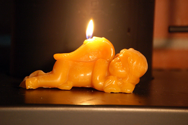 Engel Modell V aus Kunstharz mit LED Sockelbeleuchtung